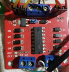 电机驱动板,是很久很久以前,大概12年的时候,做智能巡线小车的时候留下来的L293D驱动芯片,通过输入不同的电平组,可以驱动电压输出到不同的口以及方向。最多可以同时驱动两个直流电机,这里我直接拿来驱动这一个步进电机了。